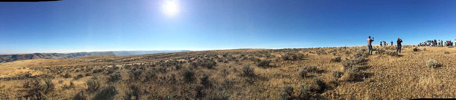 We were guests at Wilson Ranches Retreat, a 9,000-acre working ranch just outside of Fossil. On Monday, the skies dawned clear and dry. Our ranch hosts drove approximately 20 of us by four-wheel drive to a high point on their property, in the path of totality. Atop a broad plateau mountaintop covered with sagebrush and grasses we had an unobstructed view of the sun to the east, as well as Mount Hood and Mount Adams to the west.